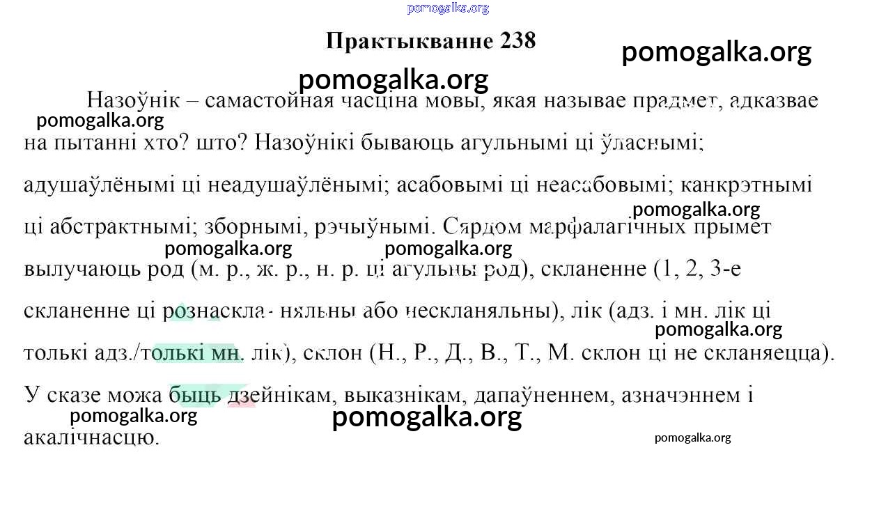 Готовые ответы - Белоруская мова 10 класс Валочка Г. М. - практыкаванне 238