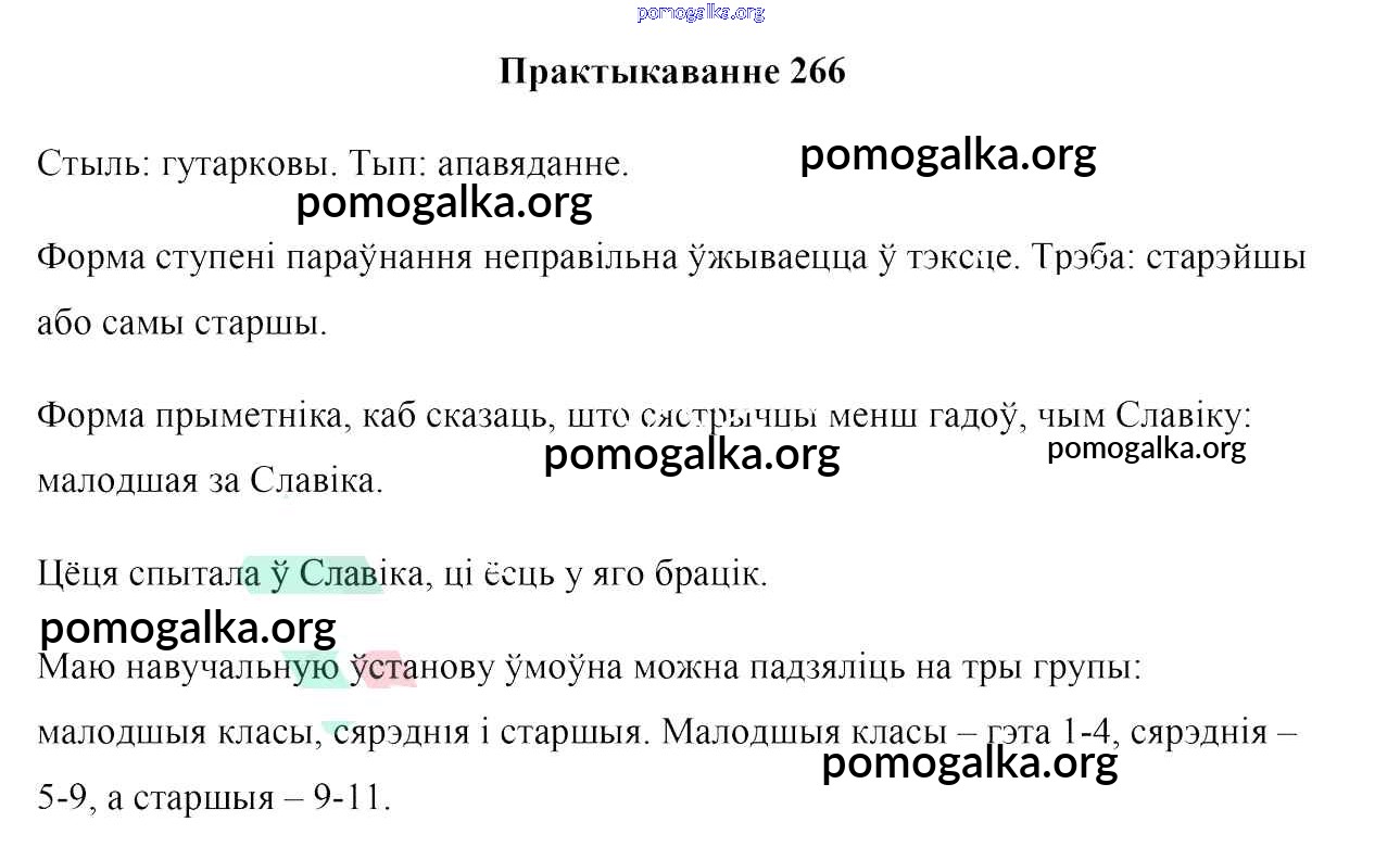 Готовые ответы - Белоруская мова 10 класс Валочка Г. М. - практыкаванне 266