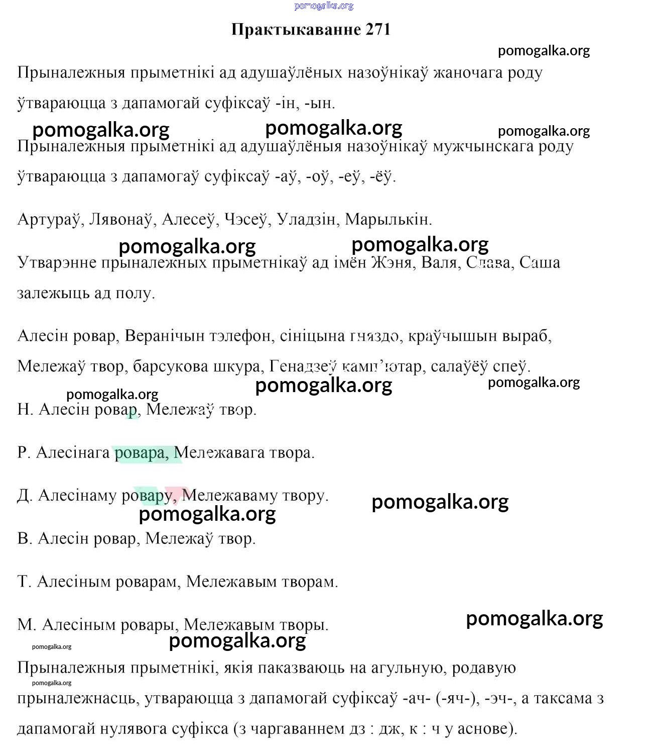 Готовые ответы - Белоруская мова 10 класс Валочка Г. М. - практыкаванне 271