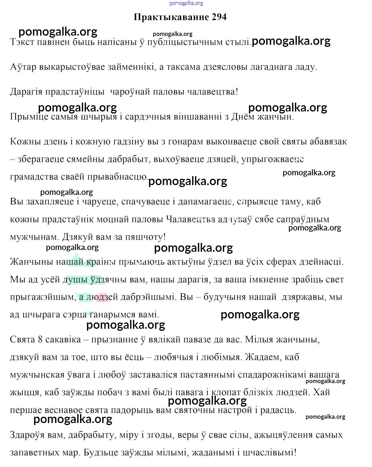 Готовые ответы - Белоруская мова 10 класс Валочка Г. М. - практыкаванне 294