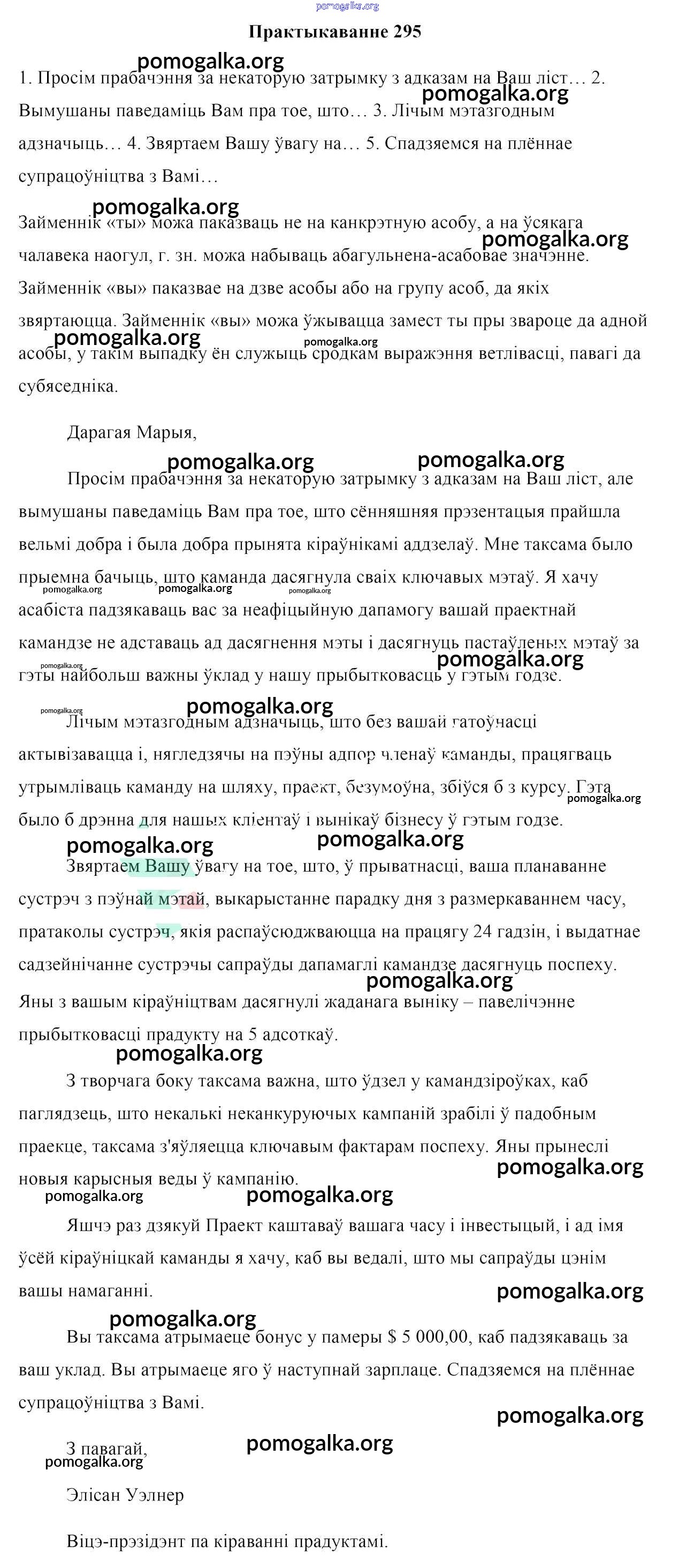 Готовые ответы - Белоруская мова 10 класс Валочка Г. М. - практыкаванне 295