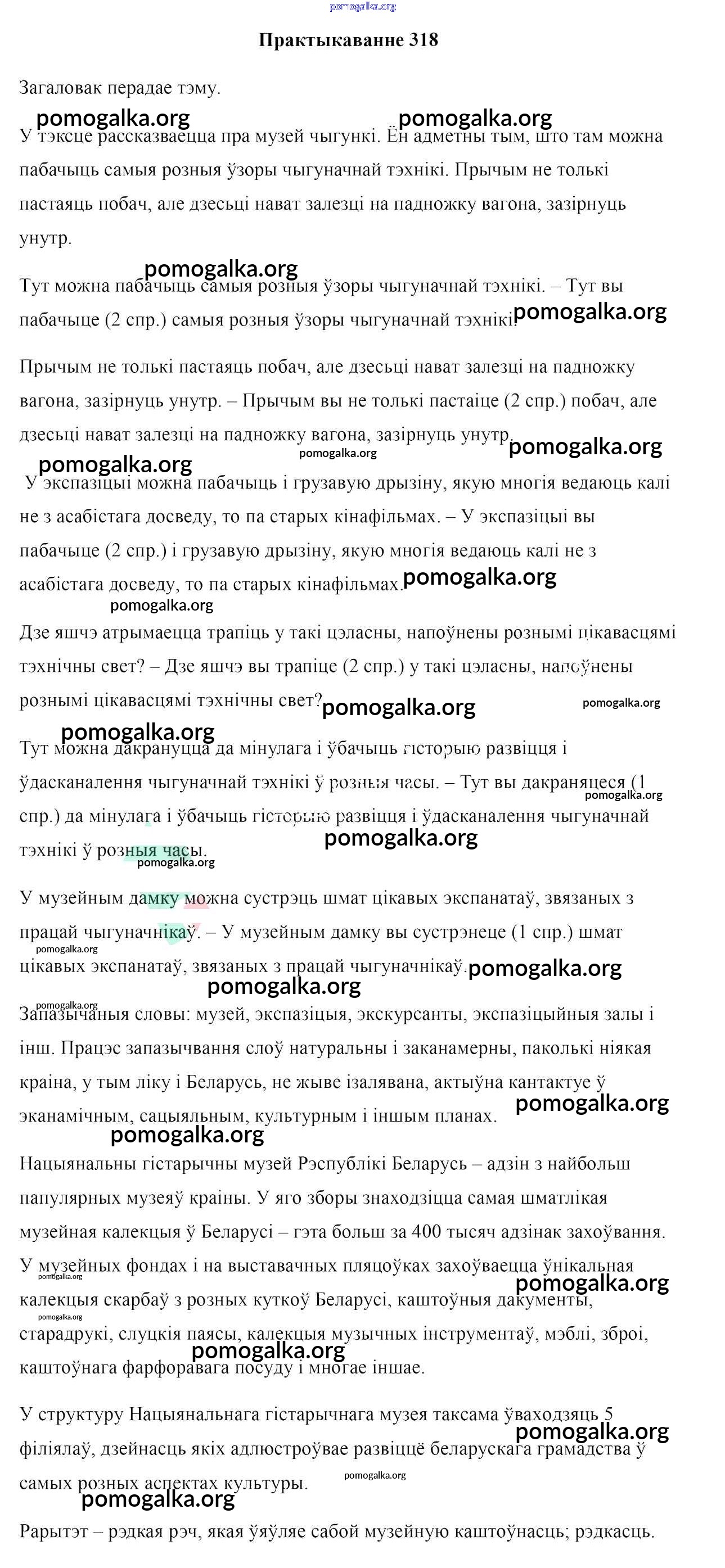 Готовые ответы - Белоруская мова 10 класс Валочка Г. М. - практыкаванне 318