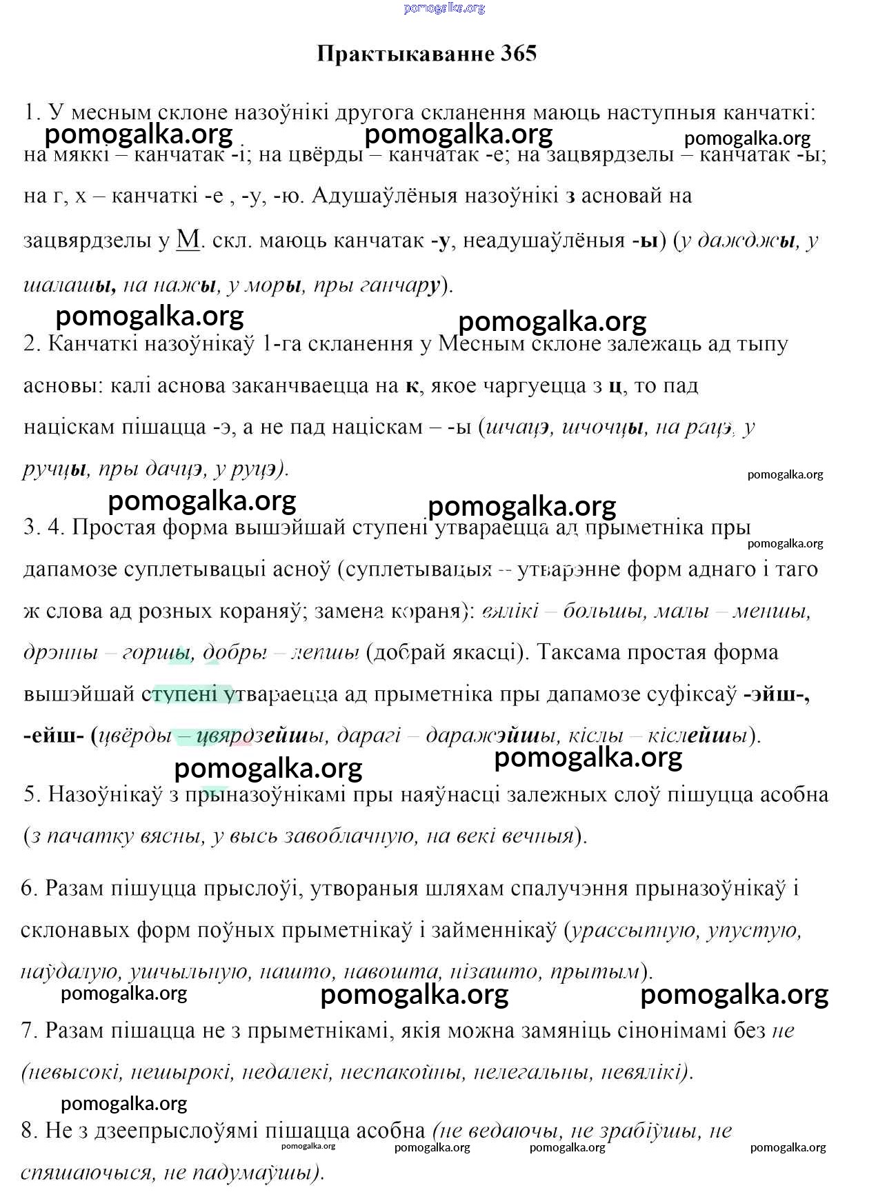 Готовые ответы - Белоруская мова 10 класс Валочка Г. М. - практыкаванне 365