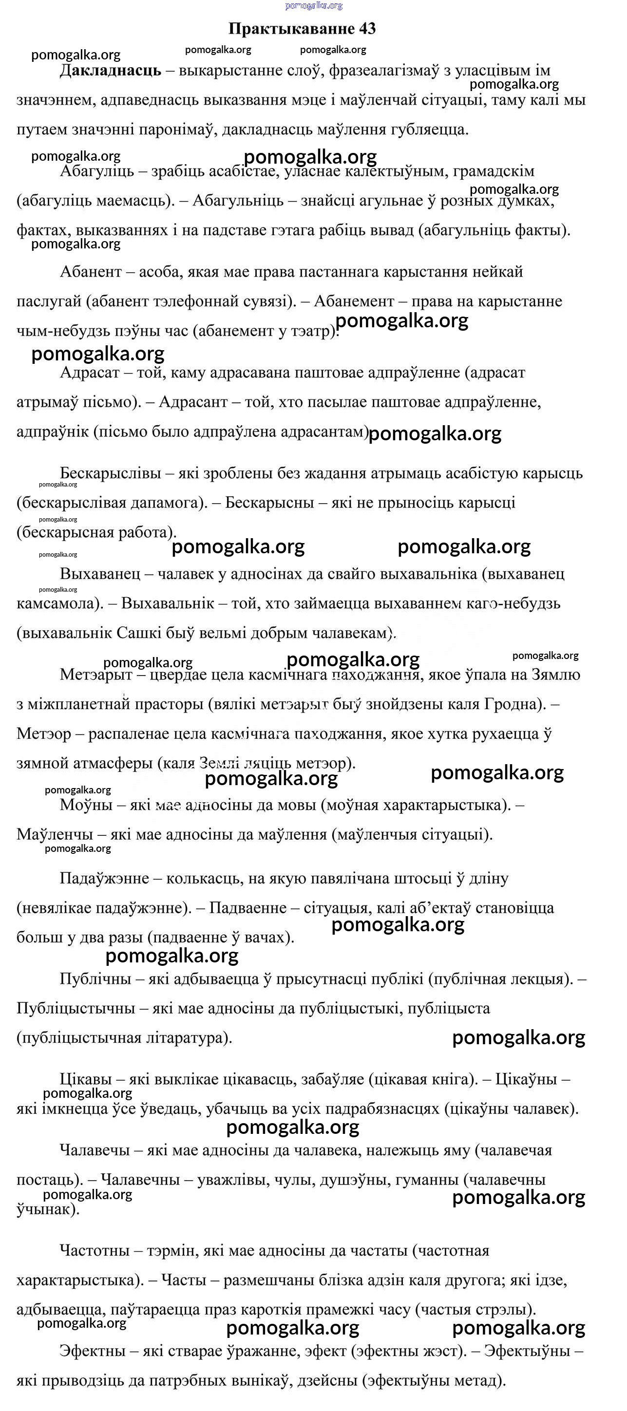 Готовые ответы - Белоруская мова 10 класс Валочка Г. М. - практыкаванне 43