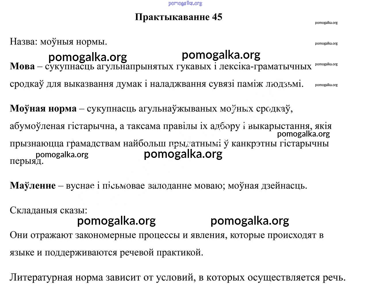 Готовые ответы - Белоруская мова 10 класс Валочка Г. М. - практыкаванне 45