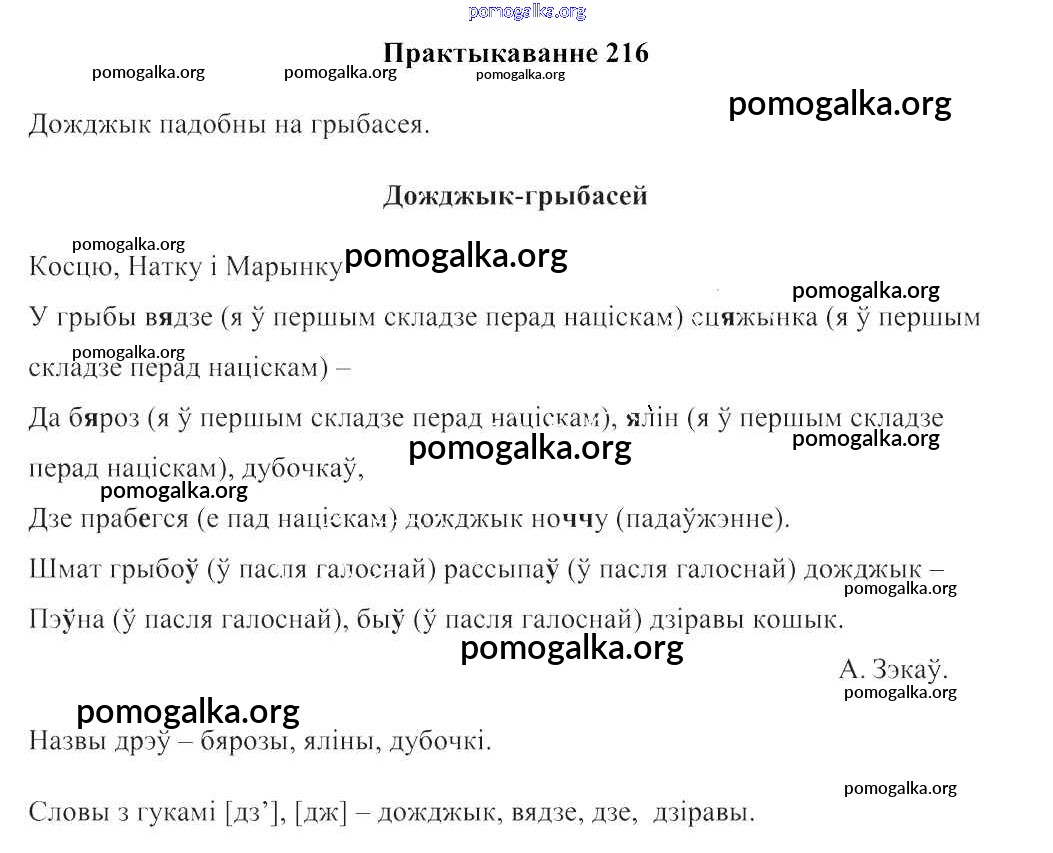 Готовые ответы - Беларуская мова:2 клас Свірыдзенка В.І. - частка 2. практыкаванне 216