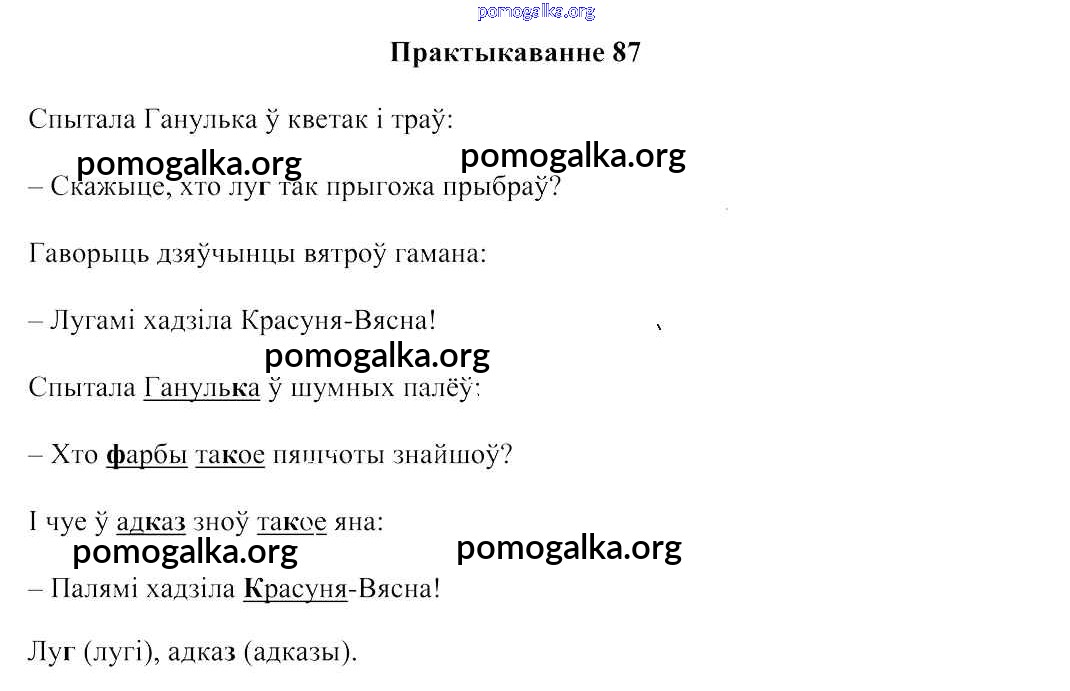 Готовые ответы - Беларуская мова:2 клас Свірыдзенка В.І. - частка 2. практыкаванне 87