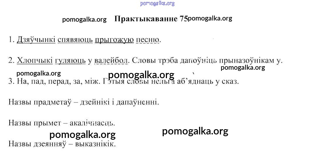 Готовые ответы - Беларуская мова 3 клас Свірыдзенка В. I. - частка 2. практыкаванне 75
