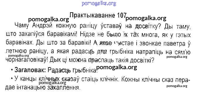 Готовые ответы - Белорусский язык 5 класс Красней В.П. - часть 1. практыкаванне 107