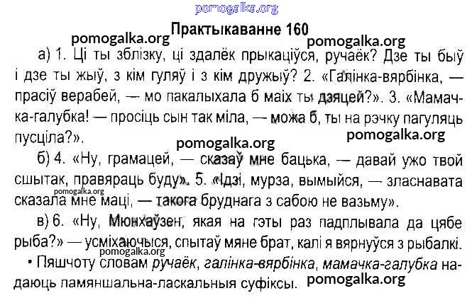 Готовые ответы - Белорусский язык 5 класс Красней В.П. - часть 1. практыкаванне 160