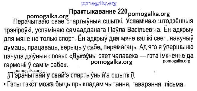 Готовые ответы - Белорусский язык 5 класс Красней В.П. - часть 1. практыкаванне 220