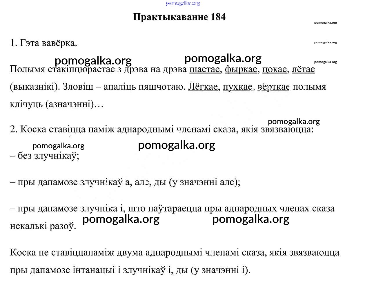 Готовые ответы - Белорусский язык 5 класс Валочка Г.М. - часть 1. практыкаванні 184