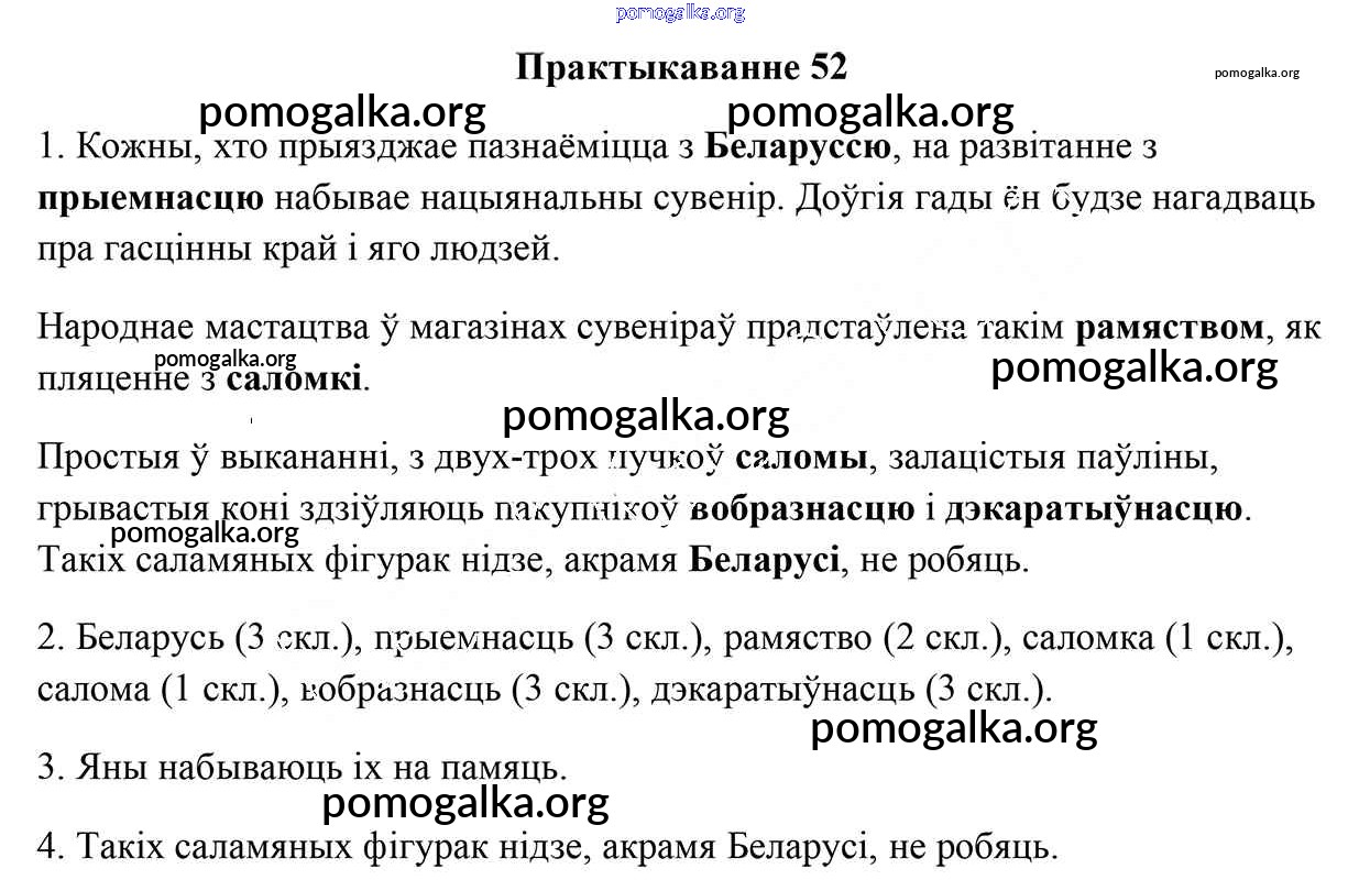 Готовые ответы - Белорусский язык 5 класс Валочка Г.М. - часть 1. практыкаванні 52