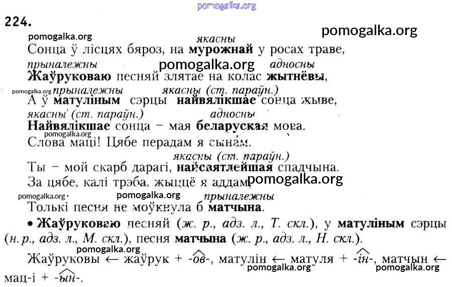 Готовые ответы - Белоруская мова 6 класс Красней В.П. - практыкаванне 224
