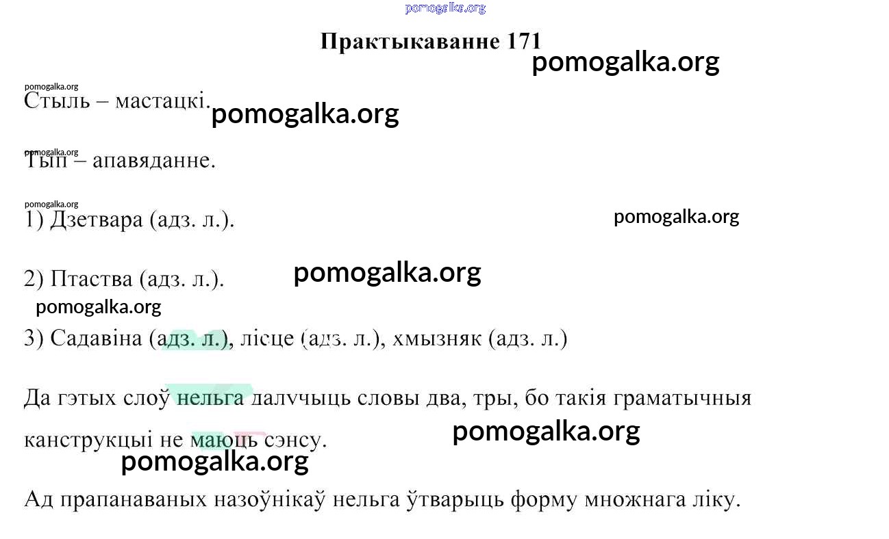 Готовые ответы - Беларуская мова 6 клас Валочка Г. М. - практыкаванне 171
