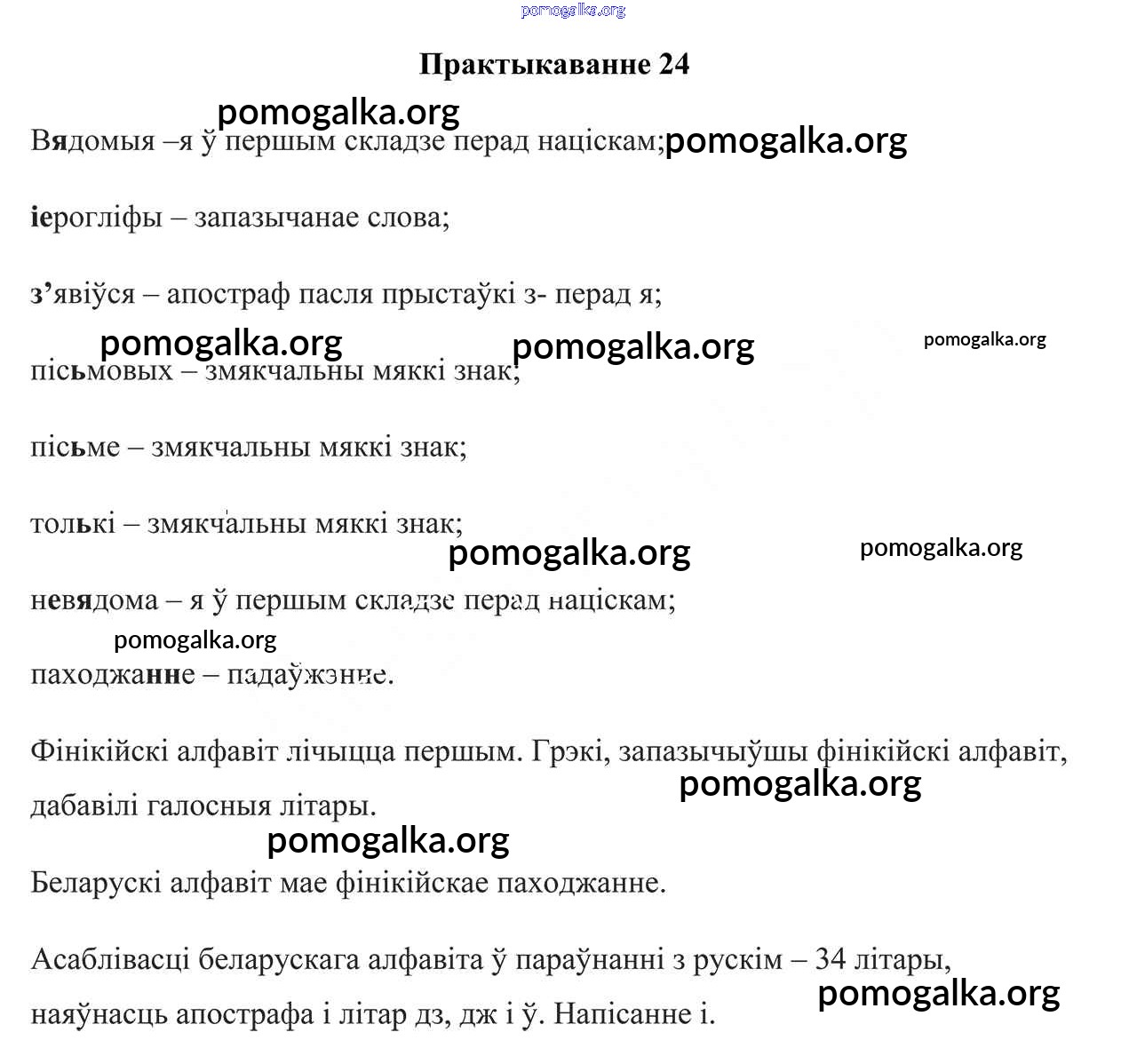 Готовые ответы - Беларуская мова 6 клас Валочка Г. М. - практыкаванне 24