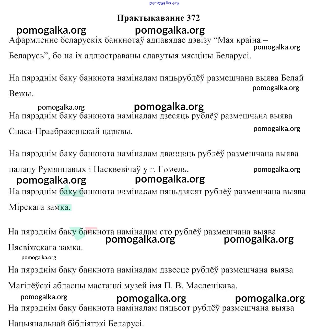 Готовые ответы - Беларуская мова 6 клас Валочка Г. М. - практыкаванне 372