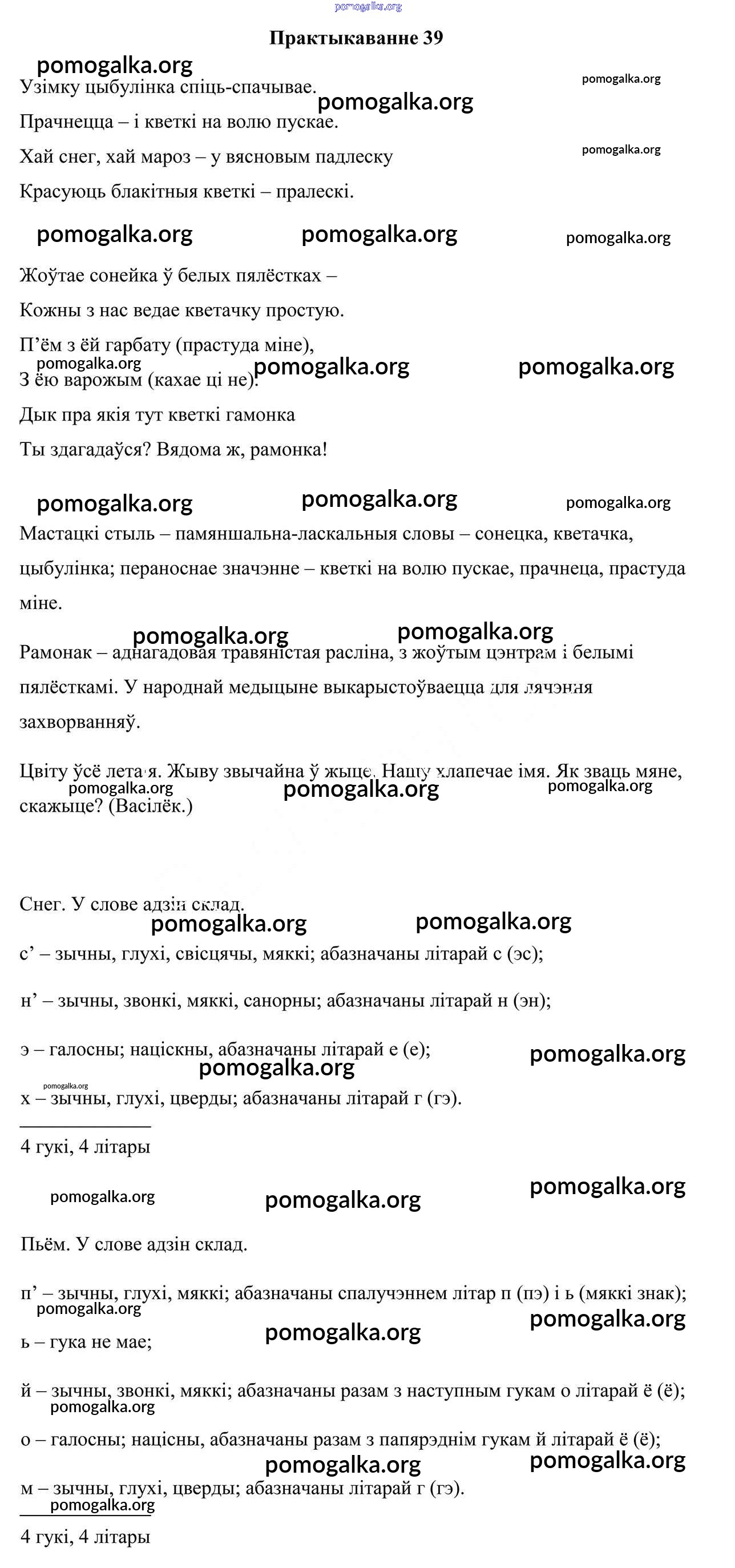 Готовые ответы - Беларуская мова 6 клас Валочка Г. М. - практыкаванне 39
