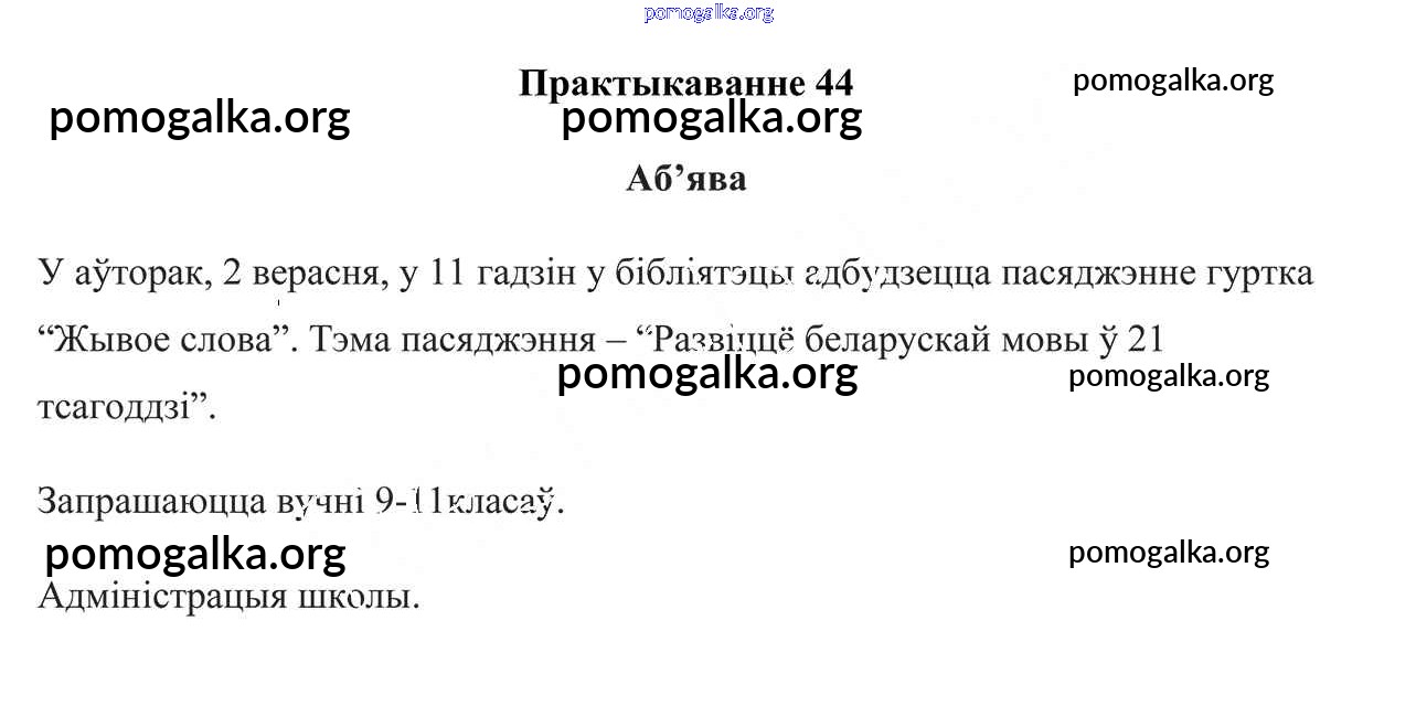 Готовые ответы - Беларуская мова 6 клас Валочка Г. М. - практыкаванне 44