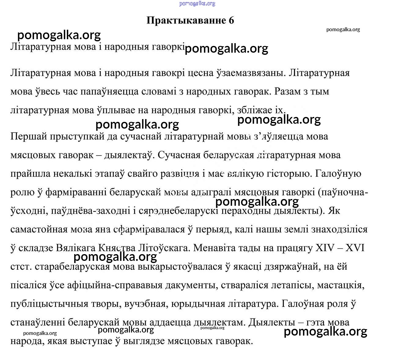 Готовые ответы - Беларуская мова 6 клас Валочка Г. М. - практыкаванне 6