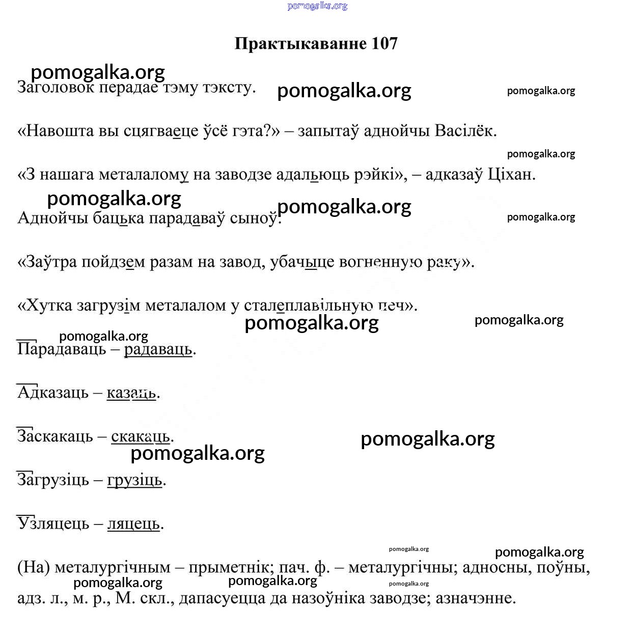 Готовые ответы - Белоруская мова 7 класс Валочка Г. М. - практыкаванне 107
