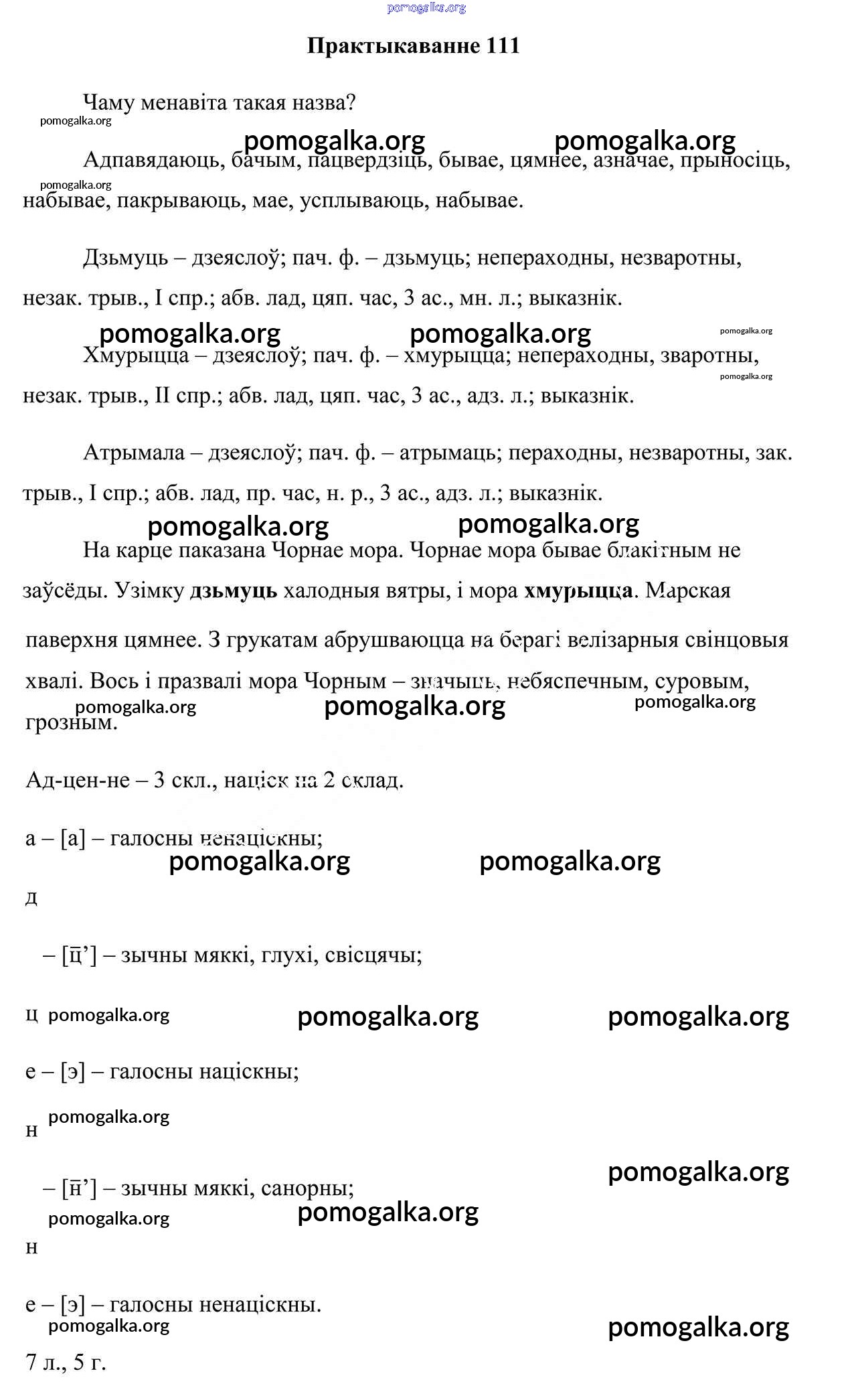 Готовые ответы - Белоруская мова 7 класс Валочка Г. М. - практыкаванне 111
