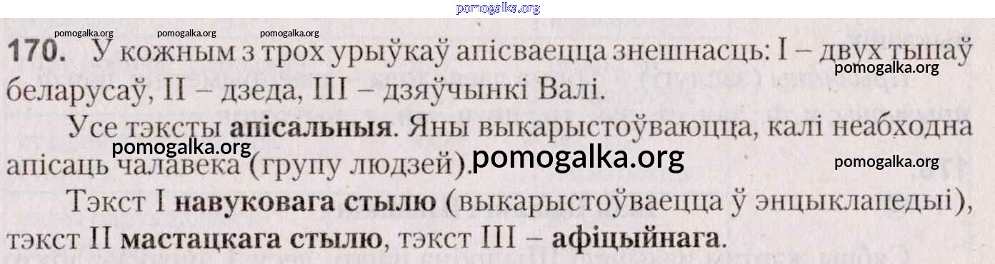 Готовые ответы - Белоруская мова 7 класс Валочка Г. М. - практыкаванне 170