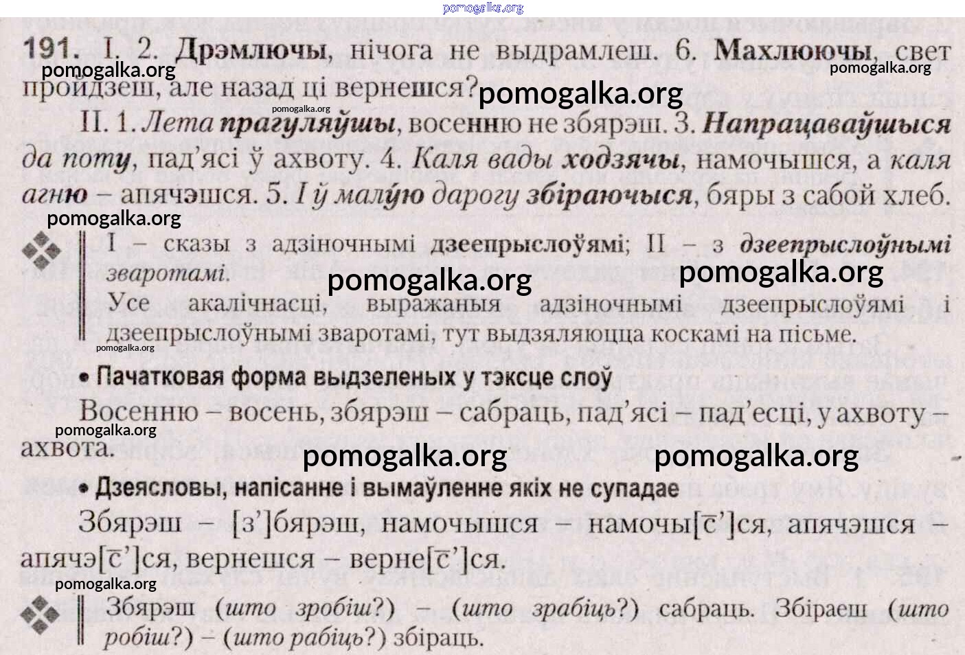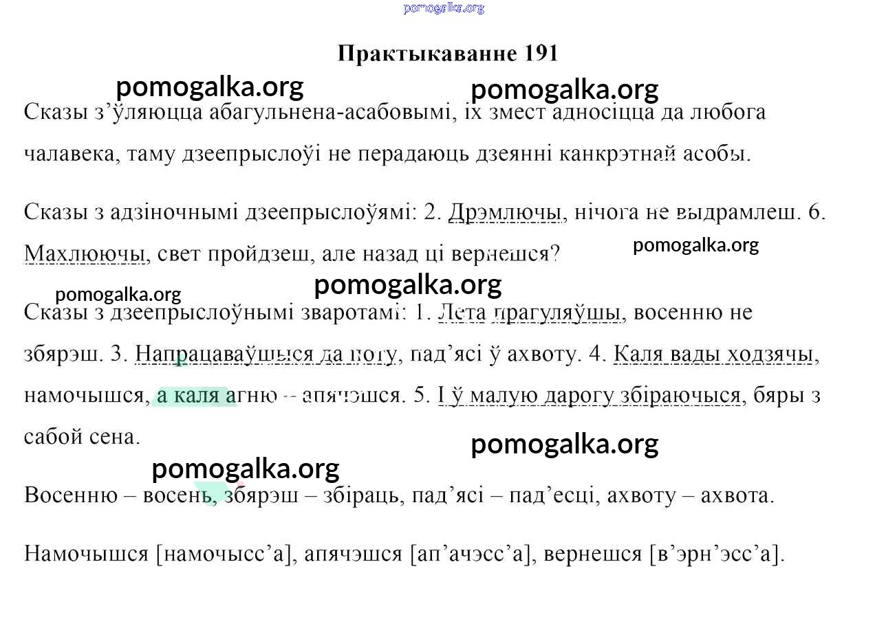 Готовые ответы - Белоруская мова 7 класс Валочка Г. М. - практыкаванне 191