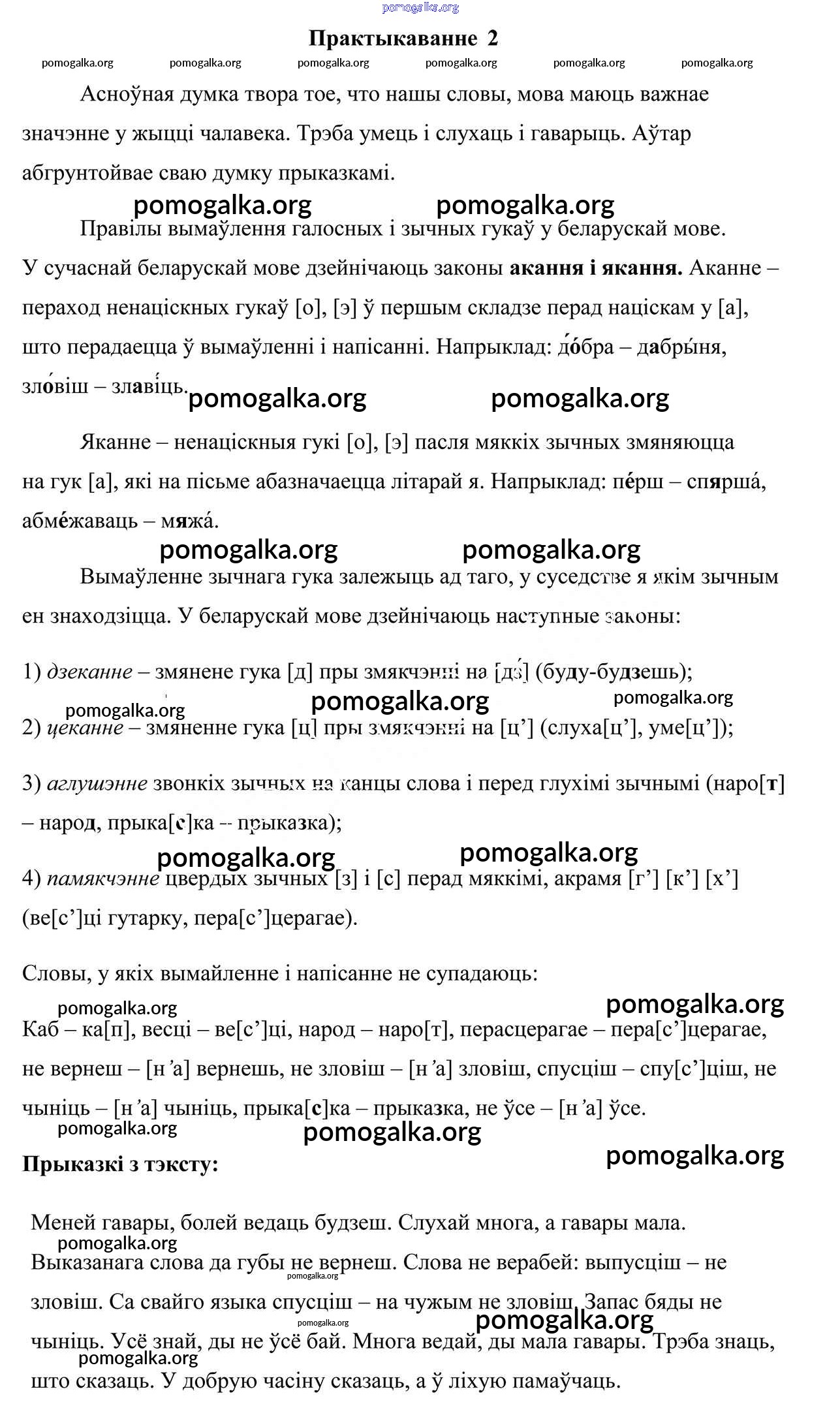Готовые ответы - Белоруская мова 7 класс Валочка Г. М. - практыкаванне 2