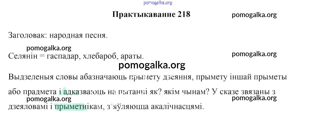 Готовые ответы - Белоруская мова 7 класс Валочка Г. М. - практыкаванне 218