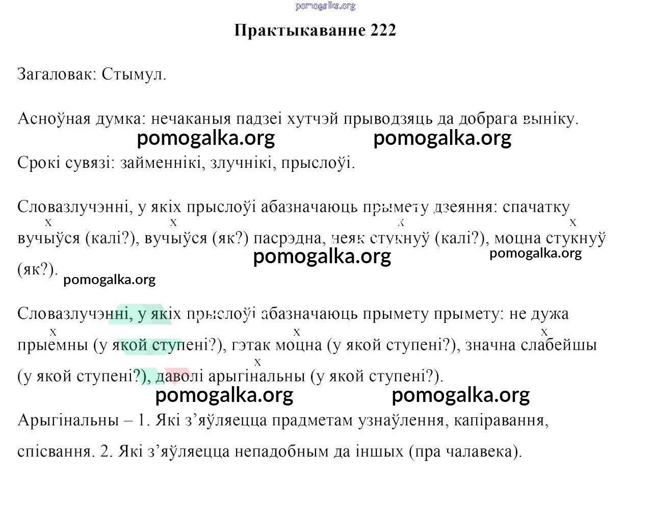 Готовые ответы - Белоруская мова 7 класс Валочка Г. М. - практыкаванне 222