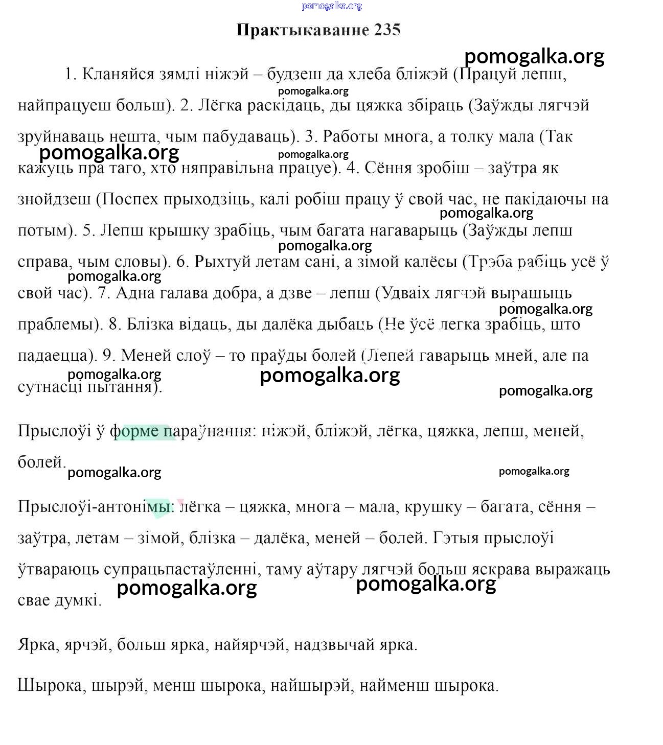 Готовые ответы - Белоруская мова 7 класс Валочка Г. М. - практыкаванне 235