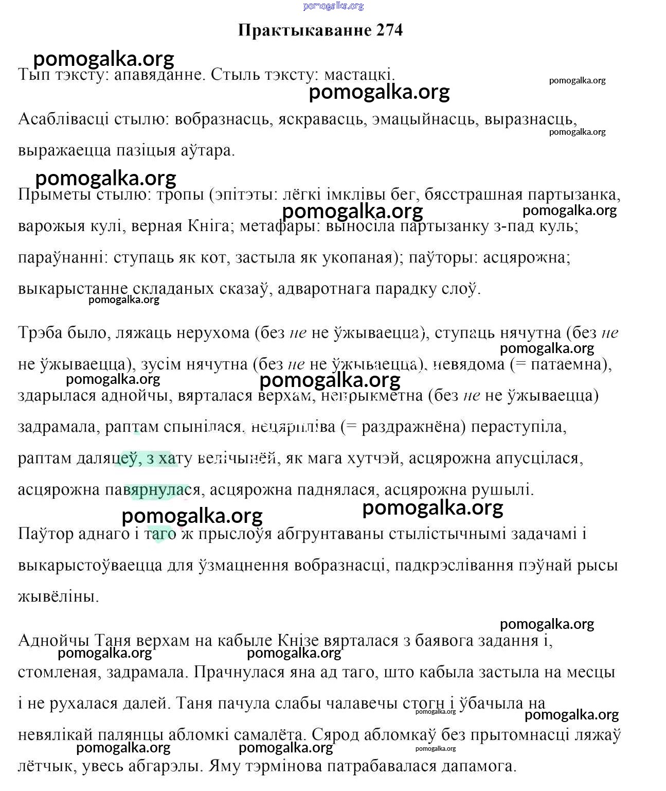 Готовые ответы - Белоруская мова 7 класс Валочка Г. М. - практыкаванне 274