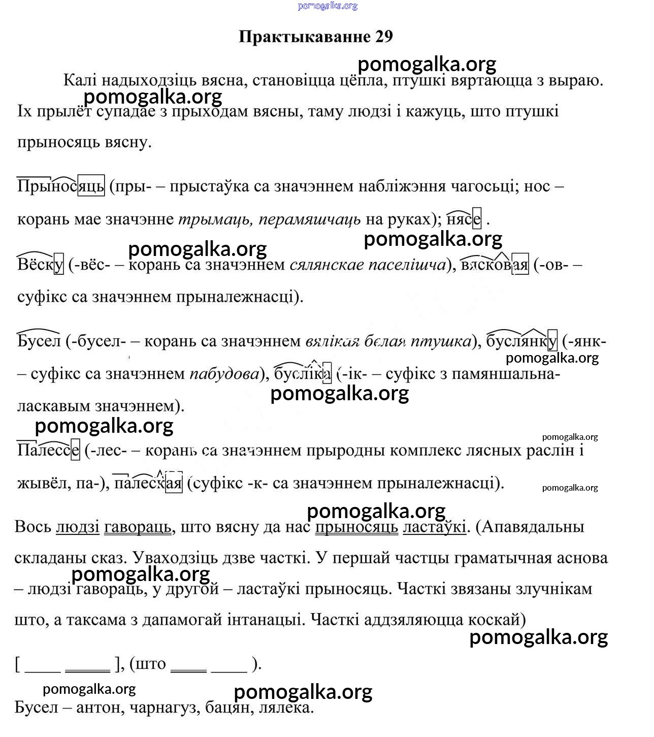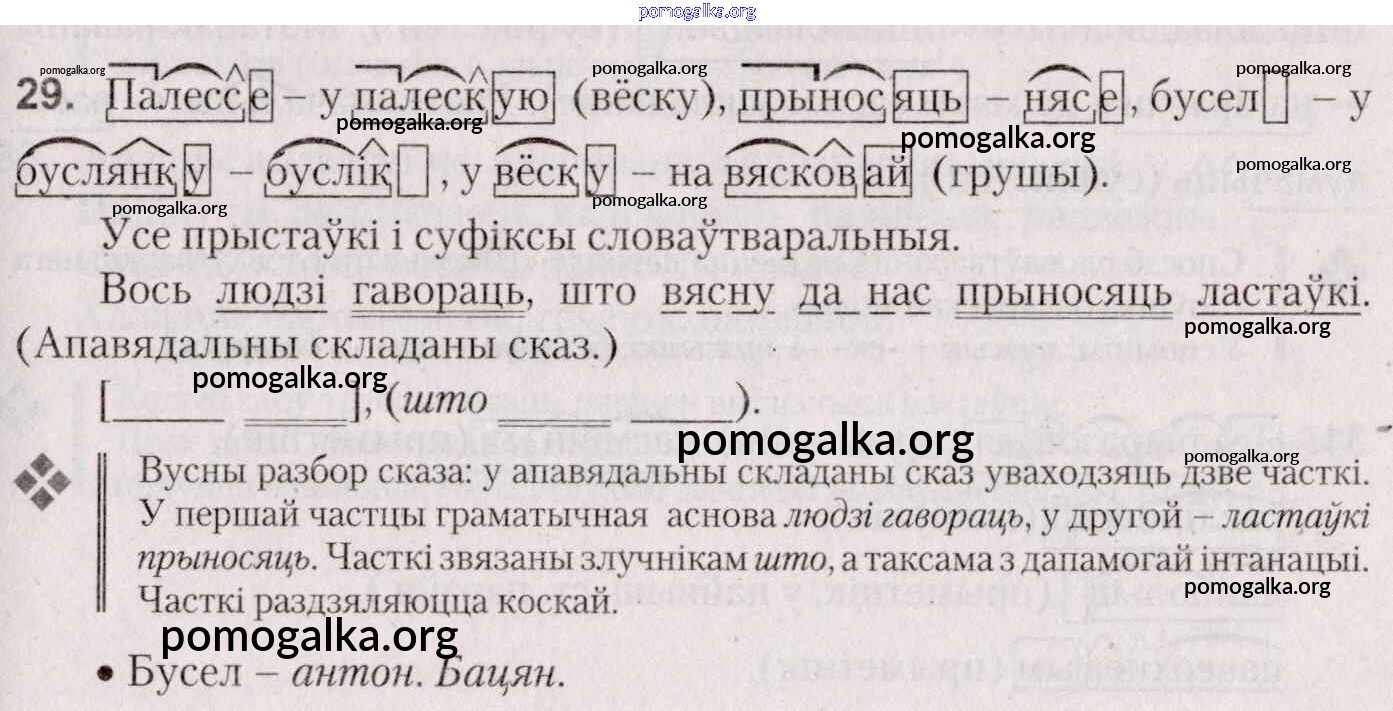 Готовые ответы - Белоруская мова 7 класс Валочка Г. М. - практыкаванне 29