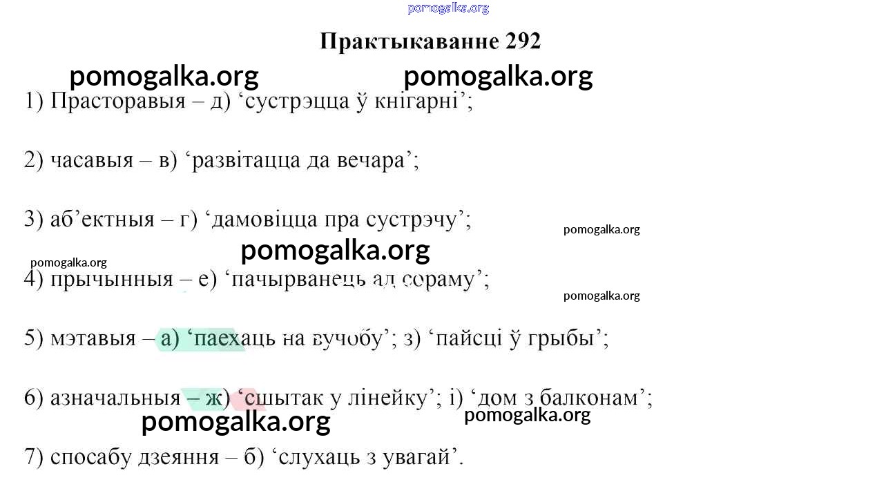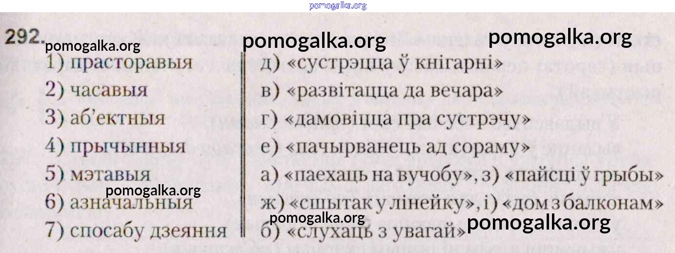 Готовые ответы - Белоруская мова 7 класс Валочка Г. М. - практыкаванне 292