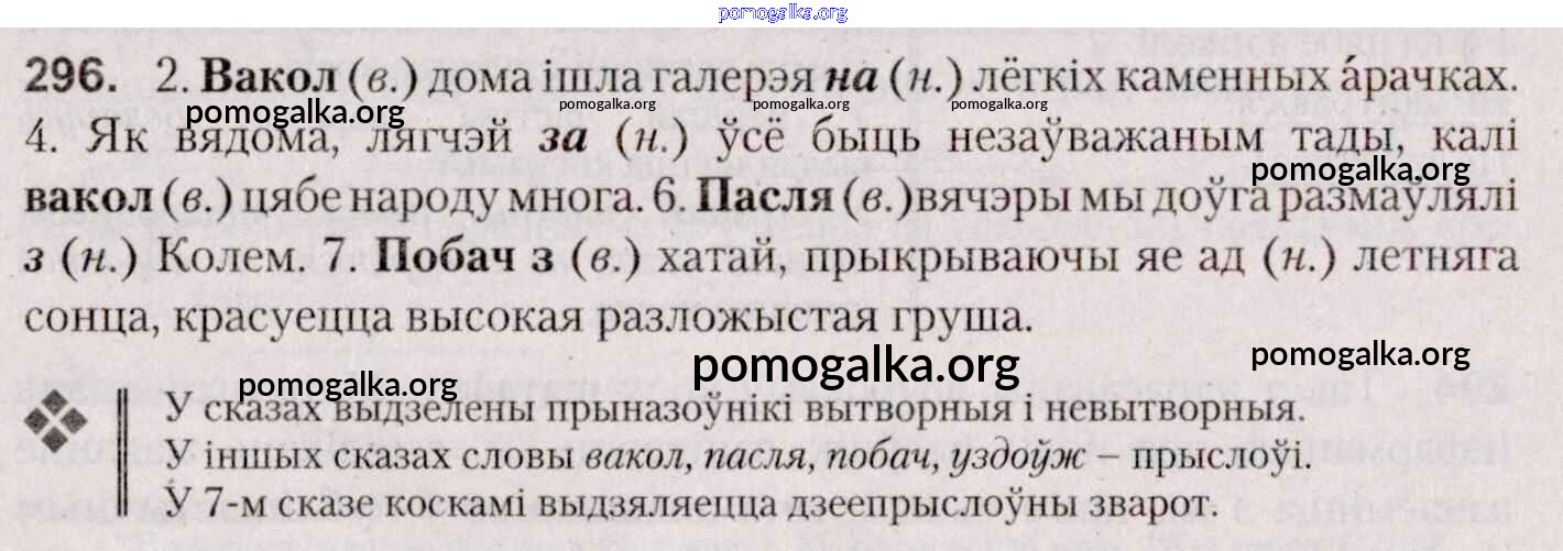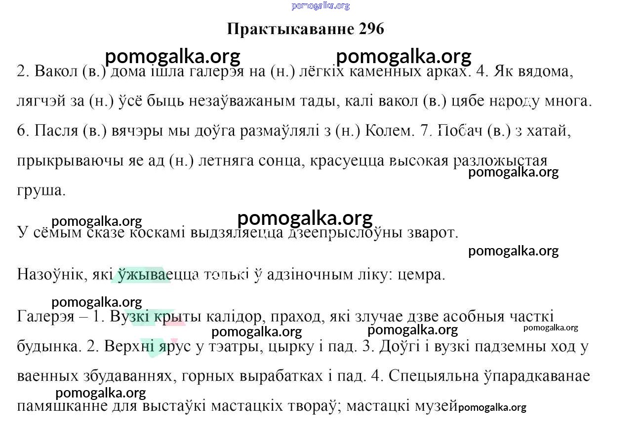 Готовые ответы - Белоруская мова 7 класс Валочка Г. М. - практыкаванне 296