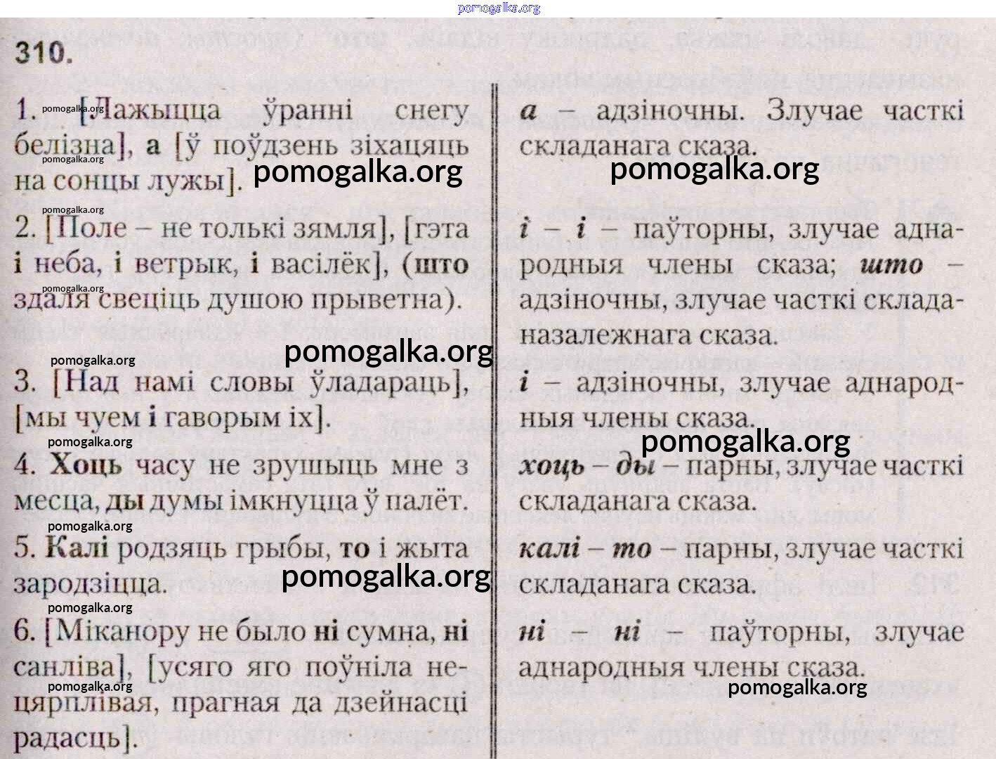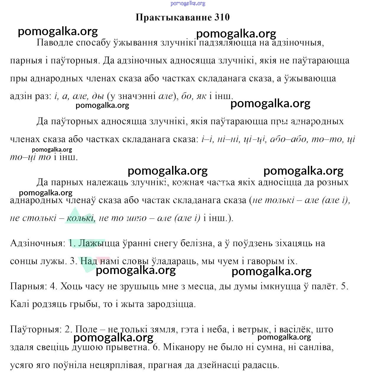 Готовые ответы - Белоруская мова 7 класс Валочка Г. М. - практыкаванне 310