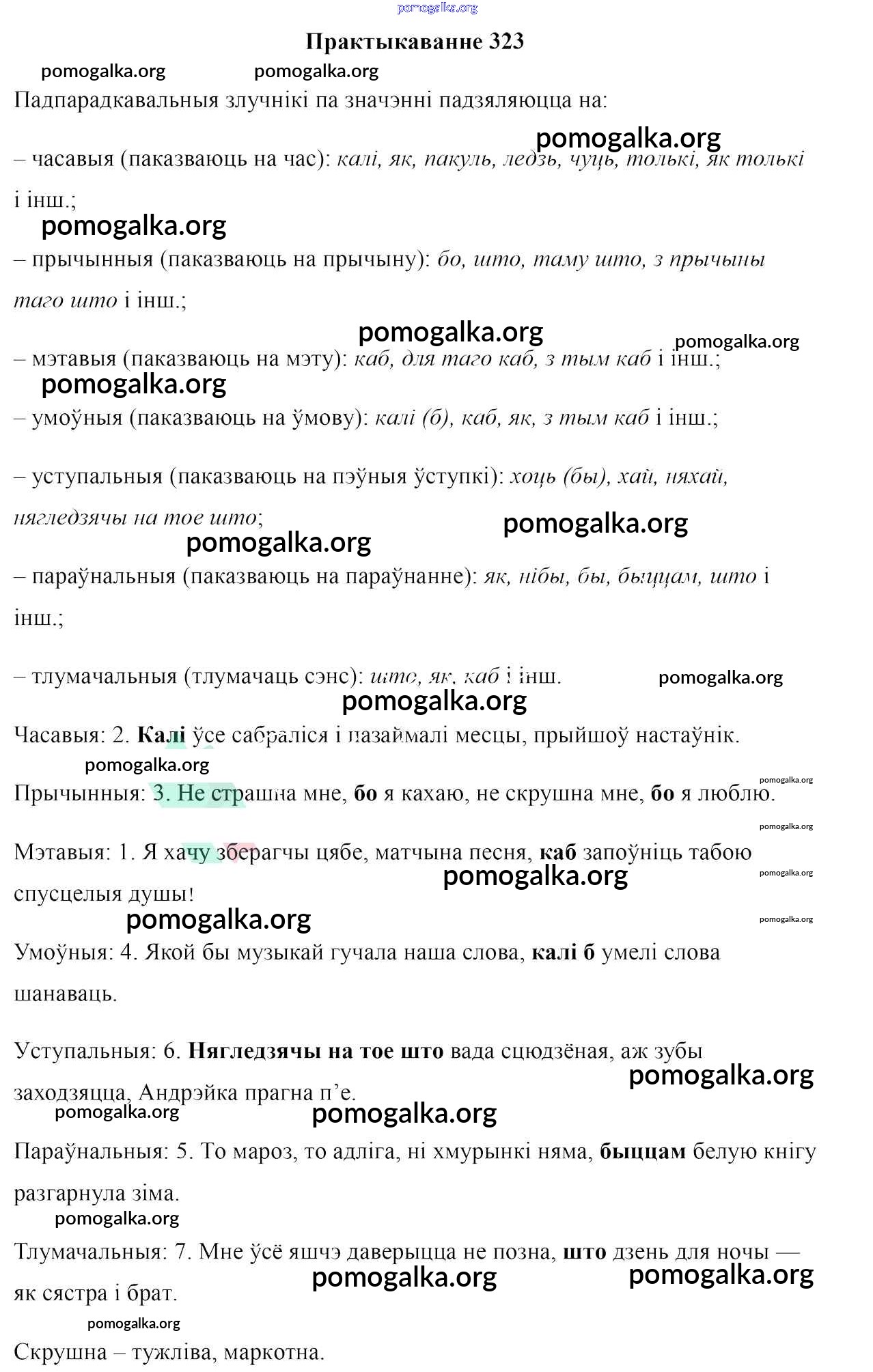 Готовые ответы - Белоруская мова 7 класс Валочка Г. М. - практыкаванне 323