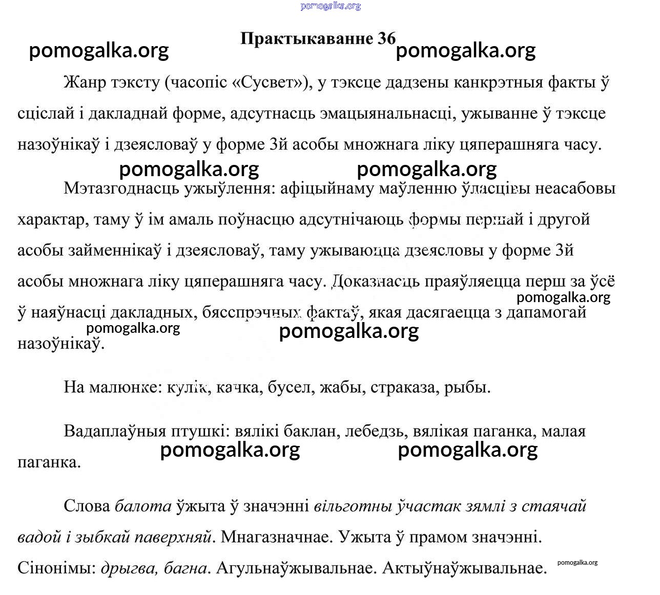 Готовые ответы - Белоруская мова 7 класс Валочка Г. М. - практыкаванне 36