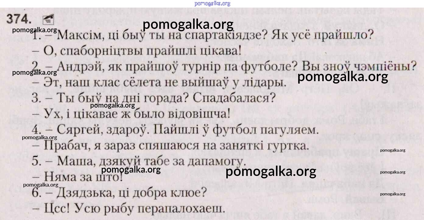 Готовые ответы - Белоруская мова 7 класс Валочка Г. М. - практыкаванне 374