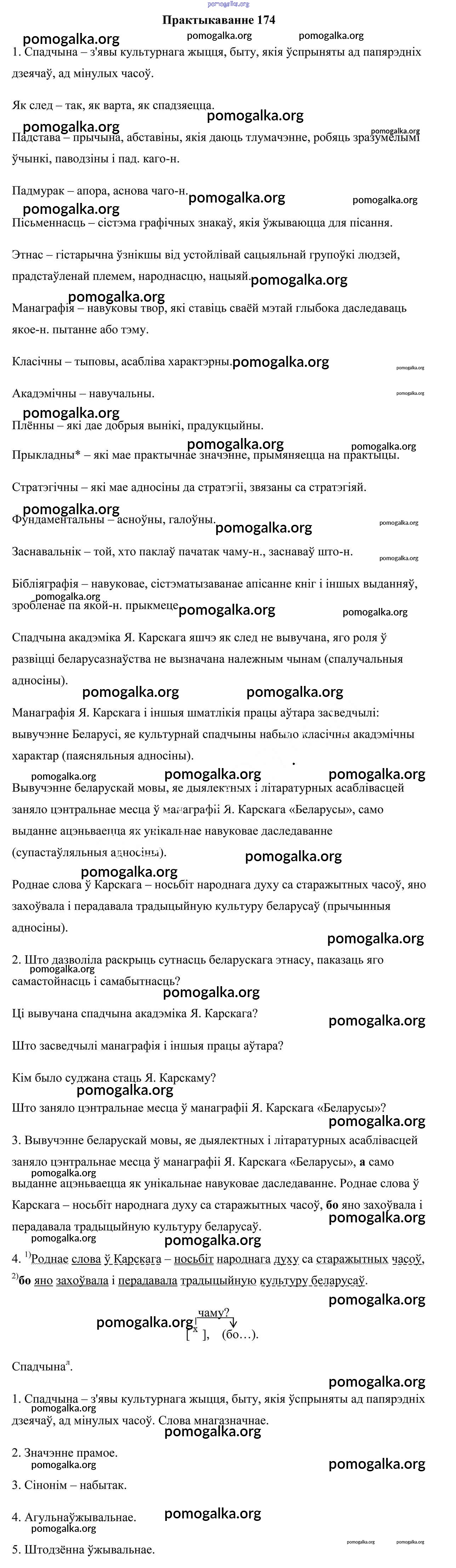 Готовые ответы - Белоруская мова 9 класс Валочка Г. М. - практыкаванне 174