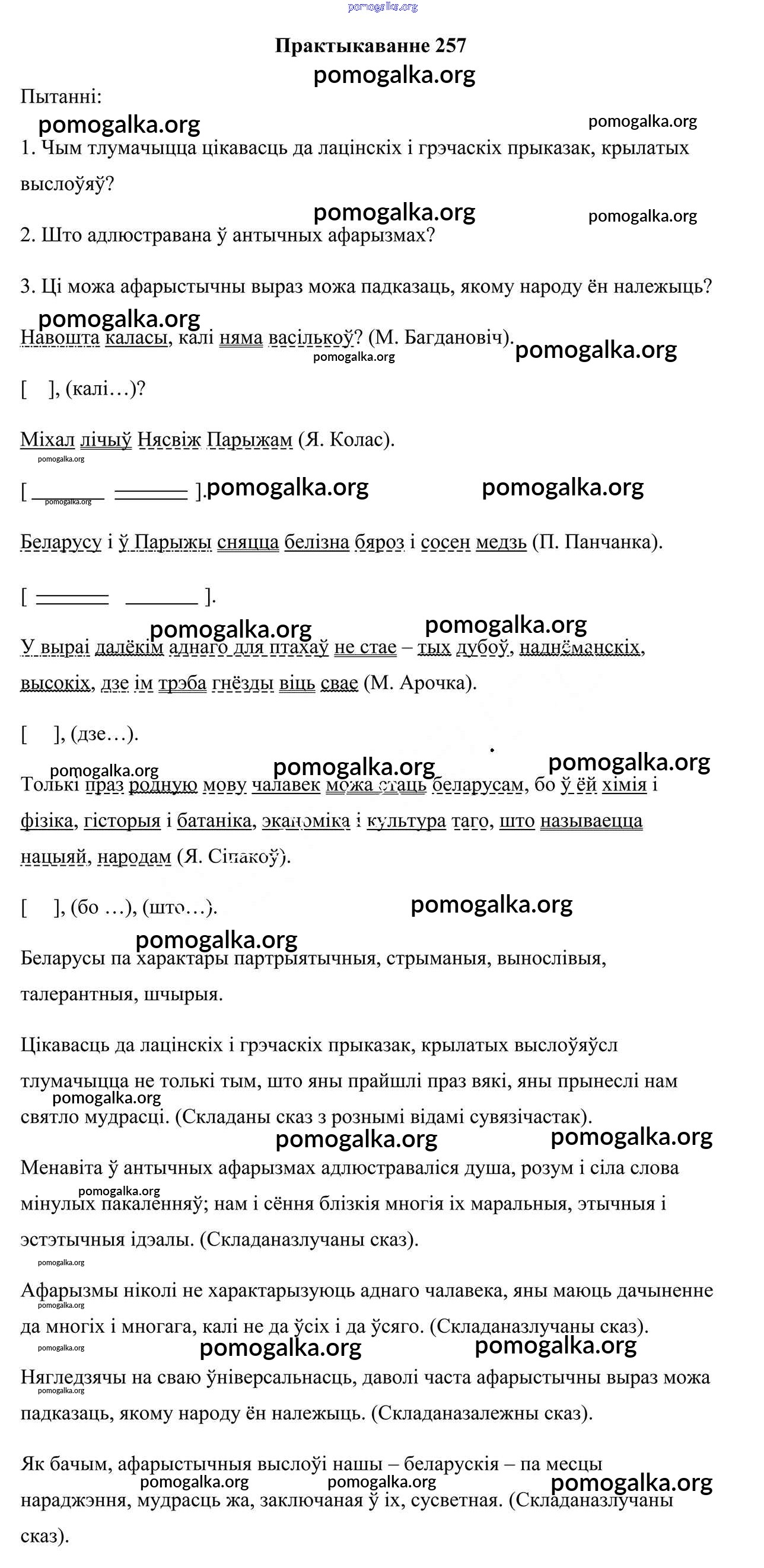 Готовые ответы - Белоруская мова 9 класс Валочка Г. М. - практыкаванне 257