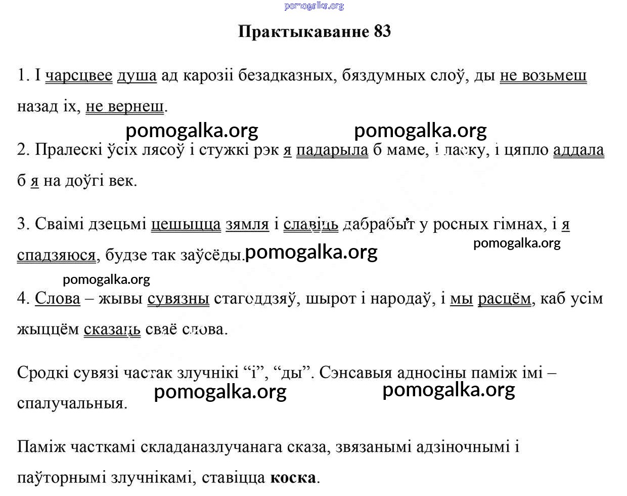 Готовые ответы - Белоруская мова 9 класс Валочка Г. М. - практыкаванне 83