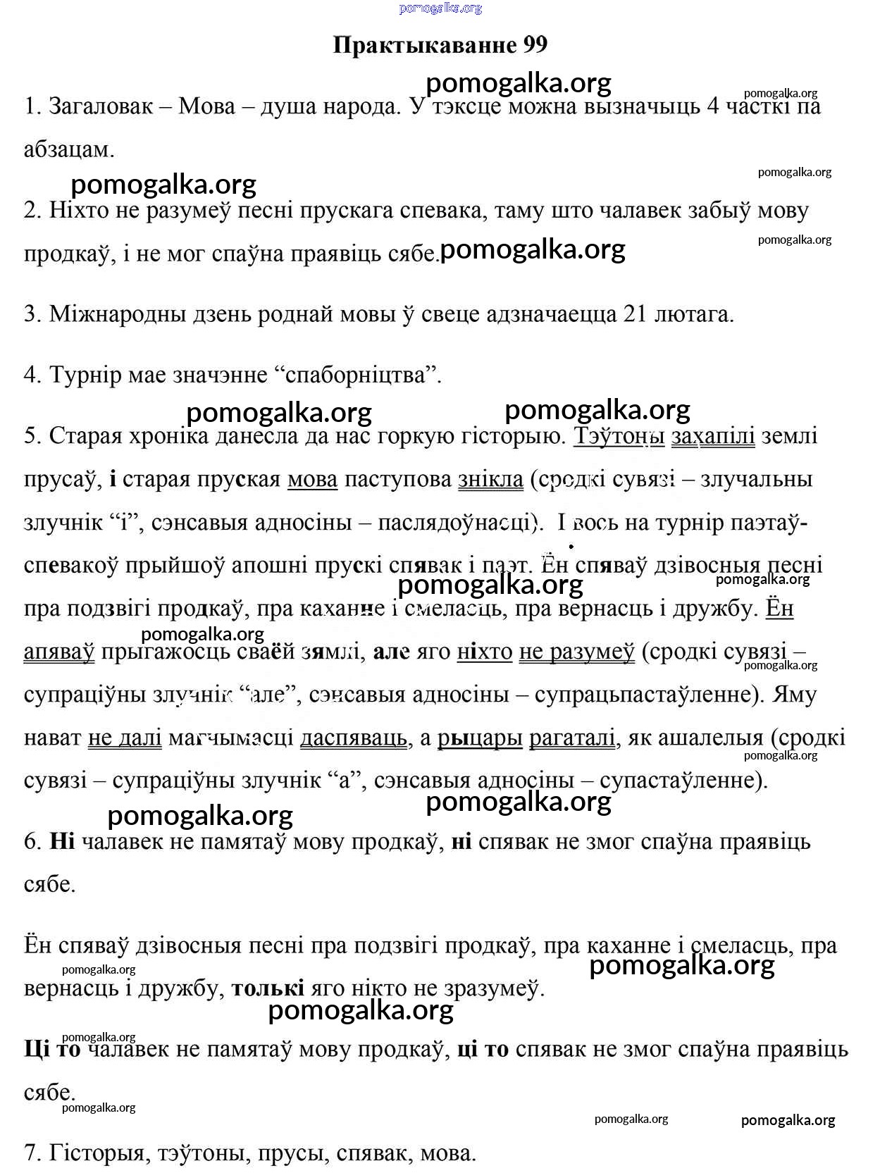 Готовые ответы - Белоруская мова 9 класс Валочка Г. М. - практыкаванне 99