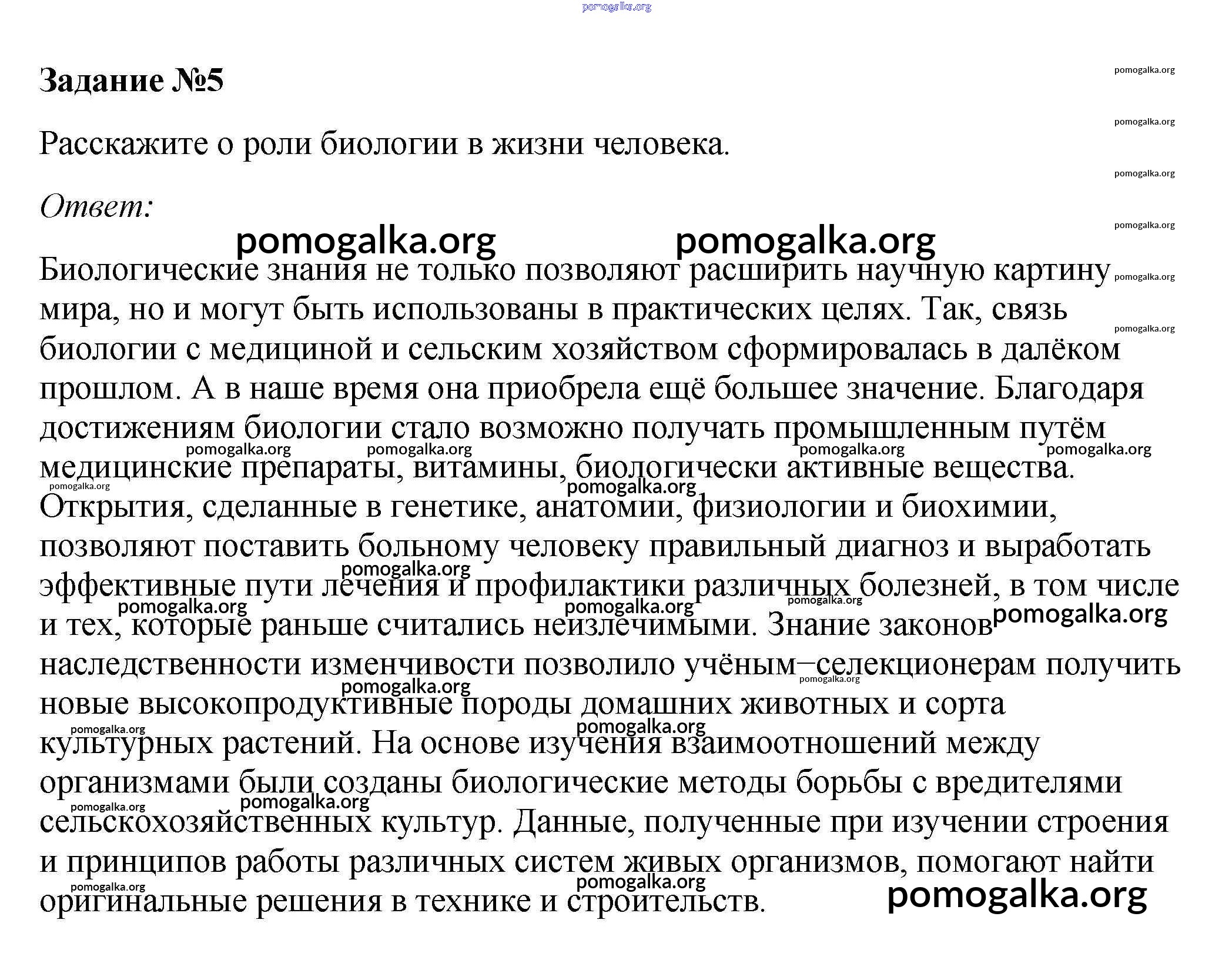 Готовые ответы - Биология 10 класс Пасечник В.В. - тренируемся §1 5