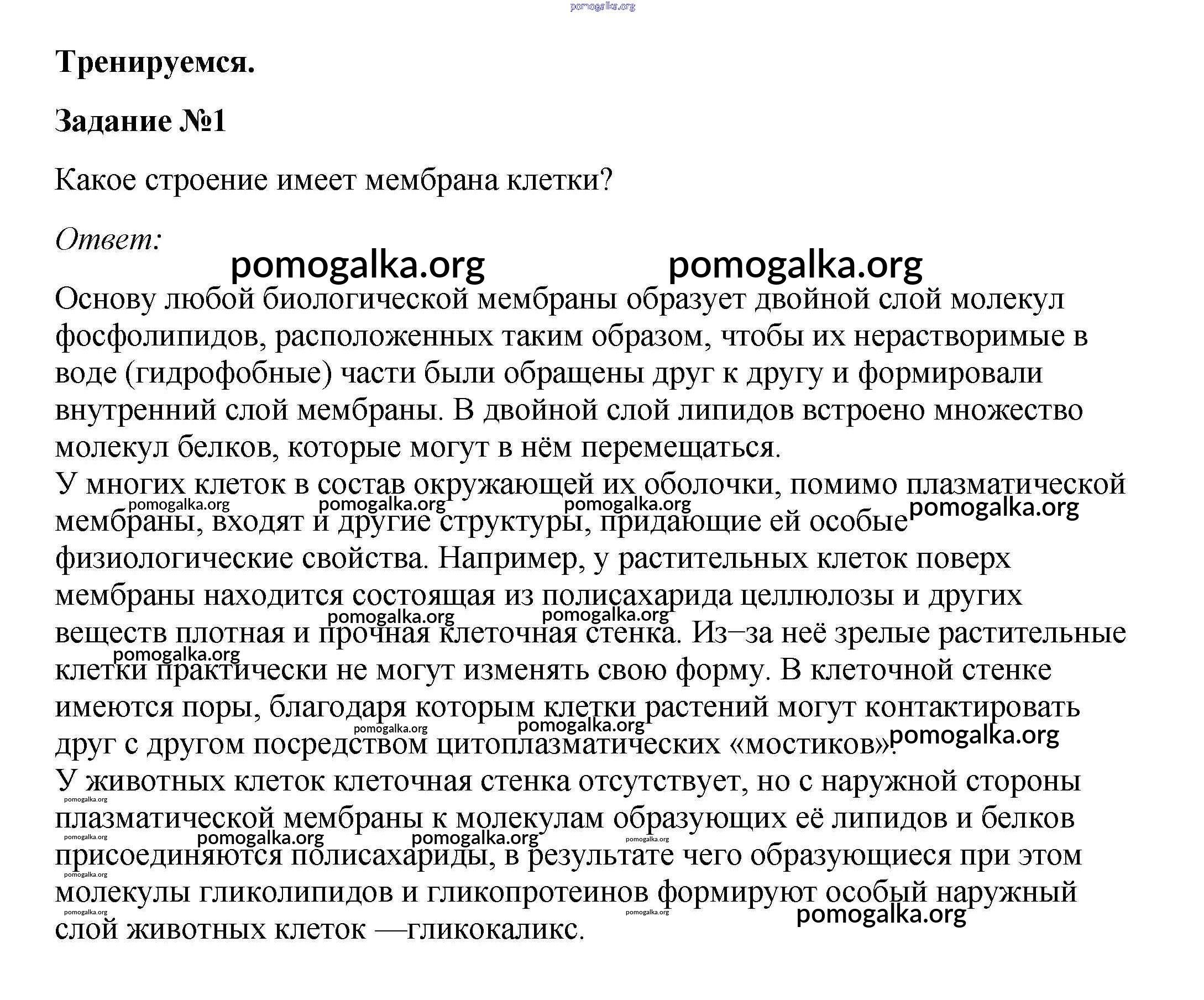 Готовые ответы - Биология 10 класс Пасечник В.В. - тренируемся §16 1