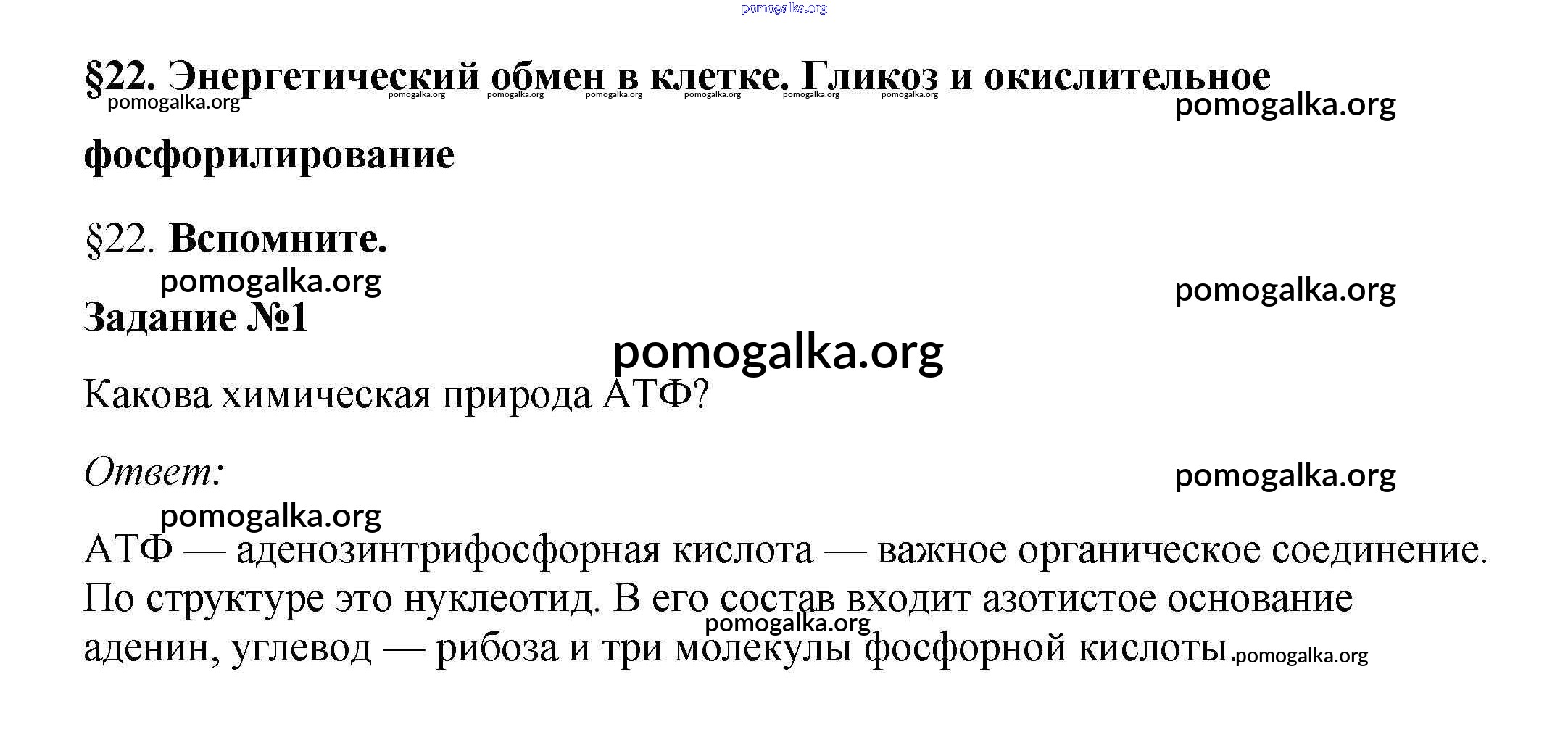 Готовые ответы - Биология 10 класс Пасечник В.В. - вспомните §22 1