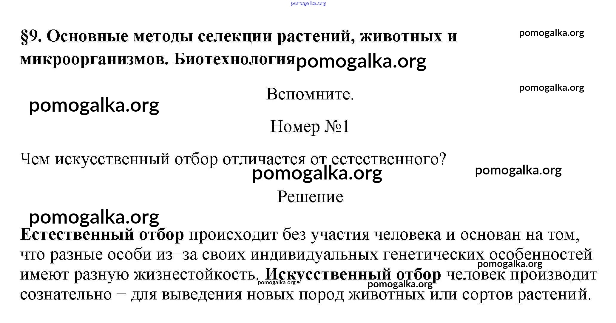 Готовые ответы - Биология 11 класс Пасечник (Базовый уровень) - вспомните §9. основные методы селекции растений, животных и микроорганизмов. 1