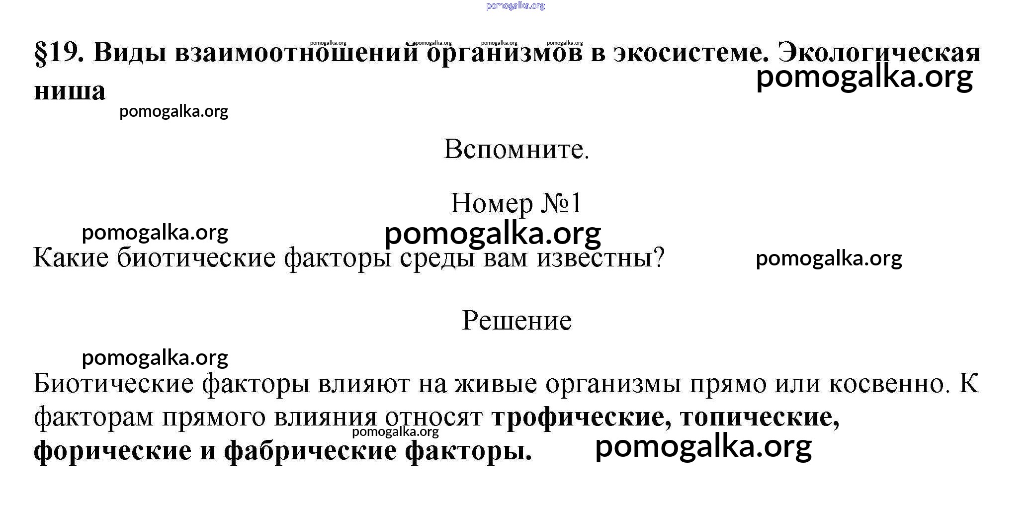 Готовые ответы - Биология 11 класс Пасечник (Базовый уровень) - вспомните §19. виды взаимоотношений организмов в экосистеме. 1