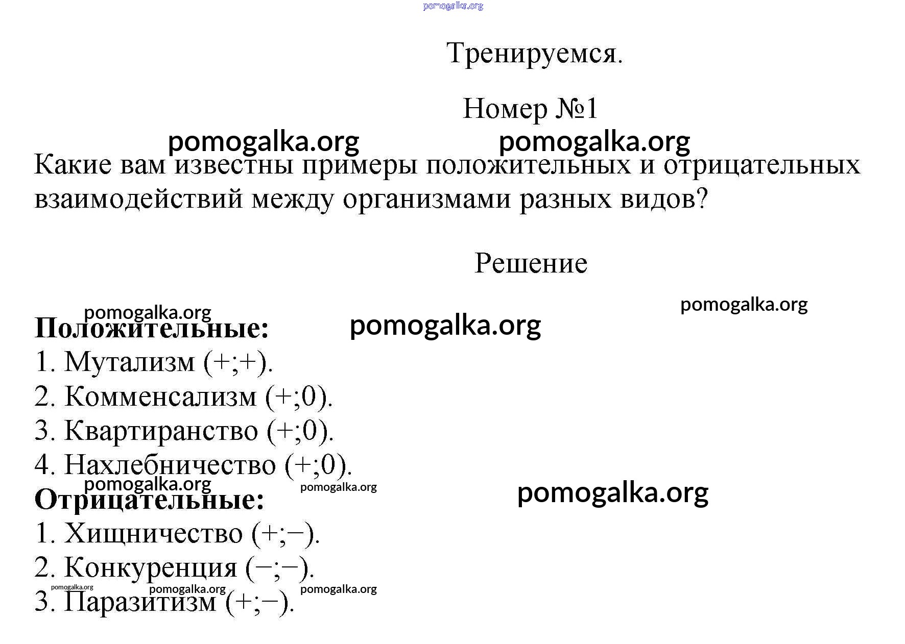 Готовые ответы - Биология 11 класс Пасечник (Базовый уровень) - тренируемся §19. виды взаимоотношений организмов в экосистеме. 1